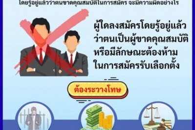 ผู้ใดลงสมัครโดยรู้อยู่แล้วว่าตนเป็นผู้ขาดคุณสมบัติ หรือมีลักษณะต้องห้ามในการสมัครรับเลือกตั้ง ต้อระวางโทษ!!