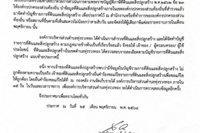 ประกาศองค์การบริหารส่วนตำบลทุ่งรวงทอง เรื่อง แบบบัญชีรายการที่ดินและสิ่งปลูกสร้าง (ภ.ด.ส.3) ประจำปี พ.ศ. 2569
