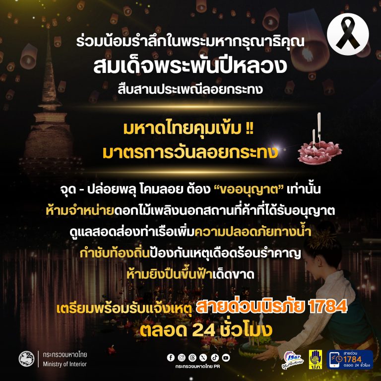 กระทรวงมหาดไทย ขอความร่วมมือทุกจังหวัดกำชับดูแลความปลอดภัยช่วงเทศกาลลอยกระทง 2568