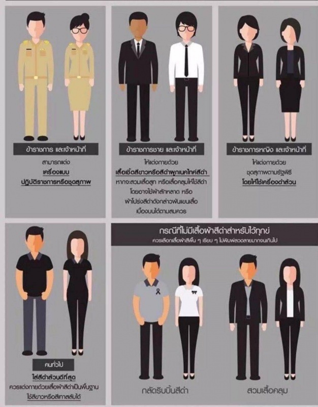 โดยมีแนวทางการแต่งกายไว้ทุกข์ดังนี้