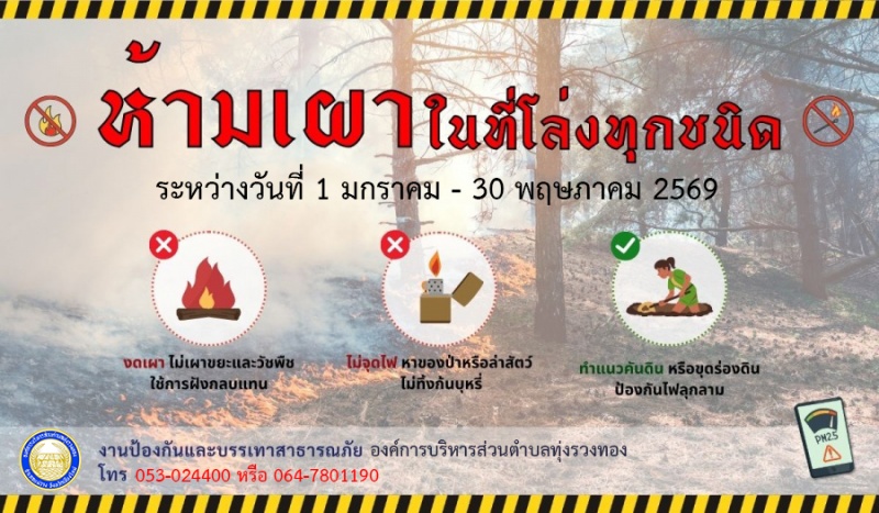 ประกาศ "ห้ามเผา" ในที่โล่งแจ้งทุกชนิด เริ่ม 1 มกราคม - 31 พฤษภาคม 2569