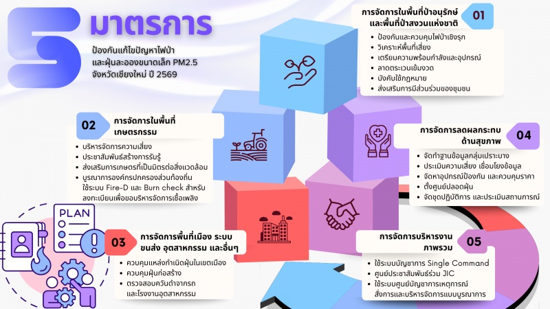 จังหวัดเชียงใหม่ ได้ออกประกาศ เรื่อง กำหนดเขตการบริหารจัดการเชื้อเพลิงและเขตควบคุมการเผาของจังหวังหวัดเชียงใหม่ ประจำปีงบประมาณ พ.ศ. 2569 โดยพื้นที่นอกเขตบริหารจัดการเชื้อเพลิง ห้ามมิให้มีการเผาในที่โล่งทุกชนิด ในพื้นที่ชุมชนห้ามให้มีการเผาขยะ เศษกิ่งไม้ ใบไม้ทุกชนิด โดยผู้ฝ่าฝืนหรือปล่อยปละละเลย ให้บังคับใช้กฎหมายอย่างเด็ดขาดในทุกกรณี ตั้งแต่วันที่ 1 มกราคม - 31 พฤษภาคม 2569