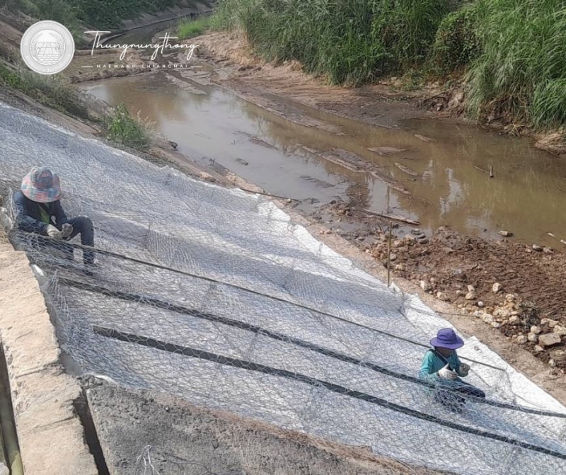 นายนิเวช แก้วคำเลิศ (นายกองค์การบริหารส่วนตำบลทุ่งรวงทอง) พร้อมด้วยคณะผู้บริหาร มอบหมายให้ กองช่าง องค์การบริหารส่วนตำบลทุ่งรวงทอง ดำเนินการจัดทำ โครงการซ่อมแซมเขื่อนป้องกันตลิ่งพัง ด้วยการเรียงกล่องกระชุหิน เพื่อป้องกันการพังทลายของริมตลิ่ง ในพื้นที่ ม.8 บ้านดอนปิน ตำบลทุ่งรวงทอง อำเภอแม่วาง จังหวัดเชียงใหม่